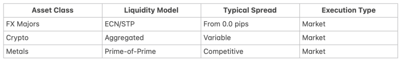 • What markets you provide liquidity for (FX, crypto, CFDs, equities, commodities)